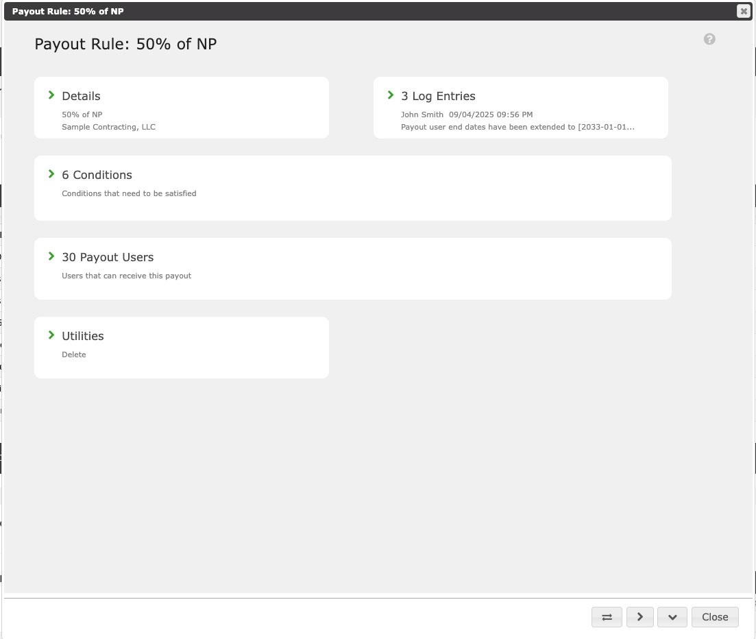 Payout Rules are templated criteria and rules that automatically create payouts/commissions within a Project Contract.