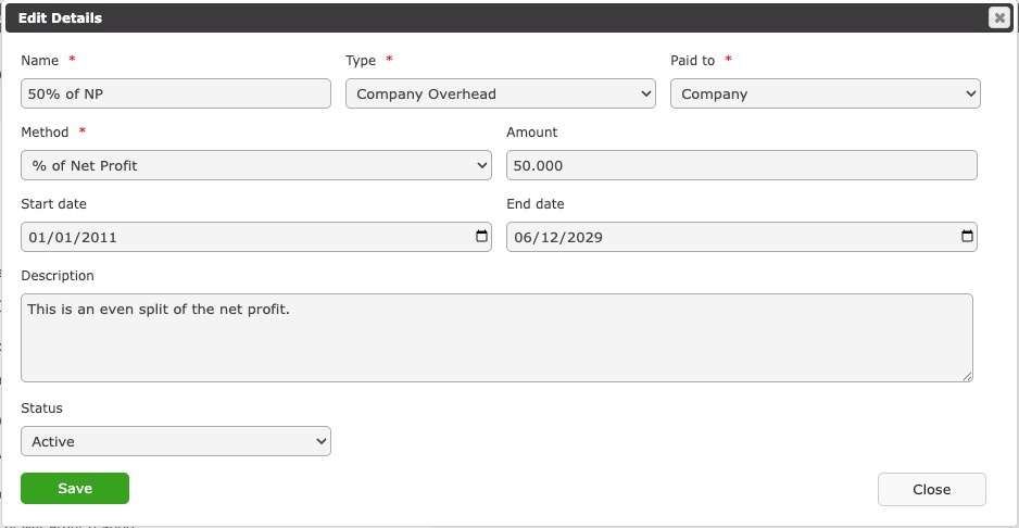 End Date - The end date is the date the payout is expected to end. If you expect the payout rule to be indefinite, the set the payout end date to 20 or 30 years out.