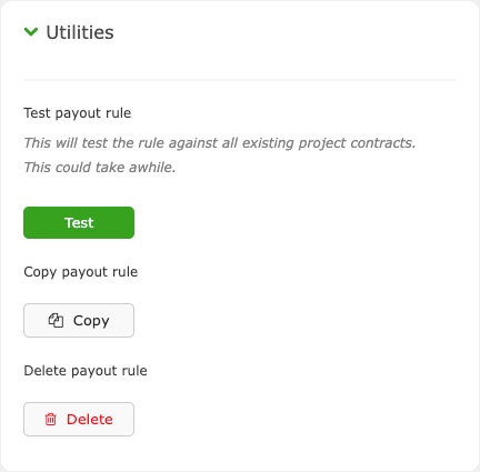 This is where you Test, Copy, or Delete a Payout Rule.