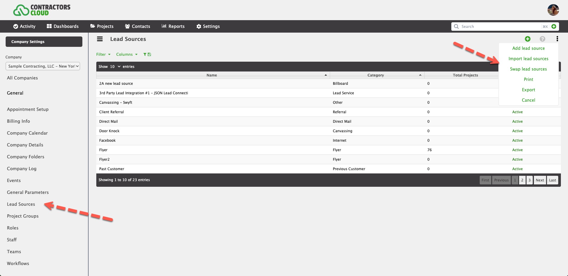Lead sources are created and managed within Company Settings (permission required).