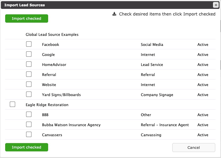 Click this to import lead sources from a global list or any of your Companies.