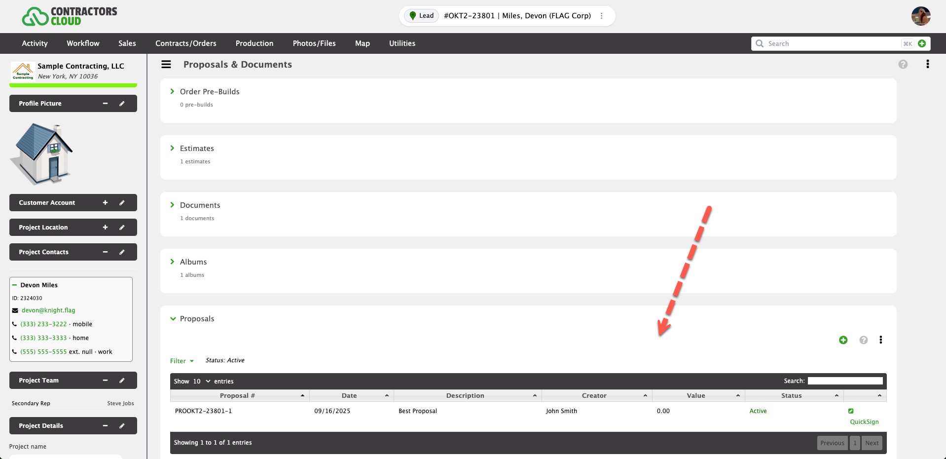 It is best to create your documents, estimates and albums prior to making a proposal.
