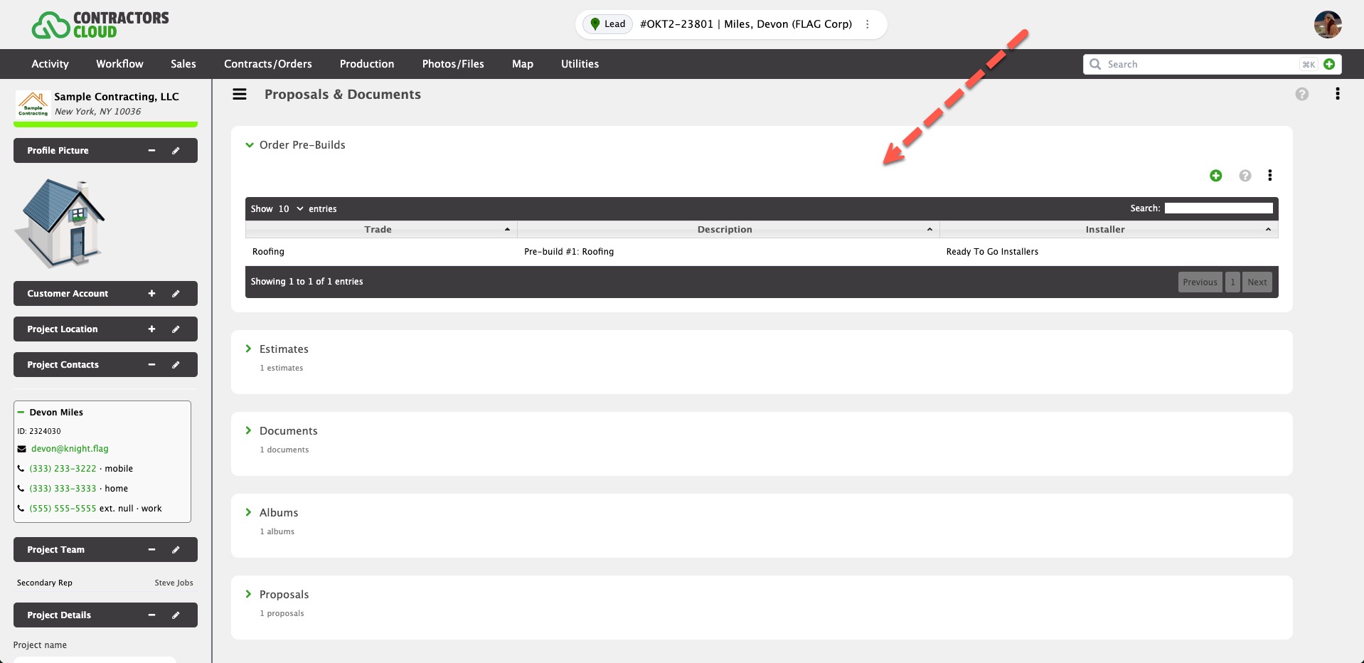 This is the area where Estimates, Documents and Albums are organized into professional looking Proposals.