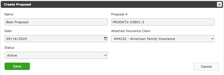 The number, or string, that identifies the Proposal. This will default to a number based on the Project Number, if applicable.