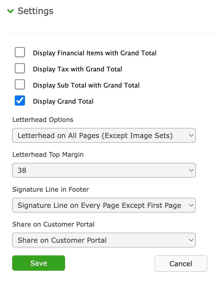 If enabled, all custom financial items for all included estimates will be listed in the Grand Total summary.