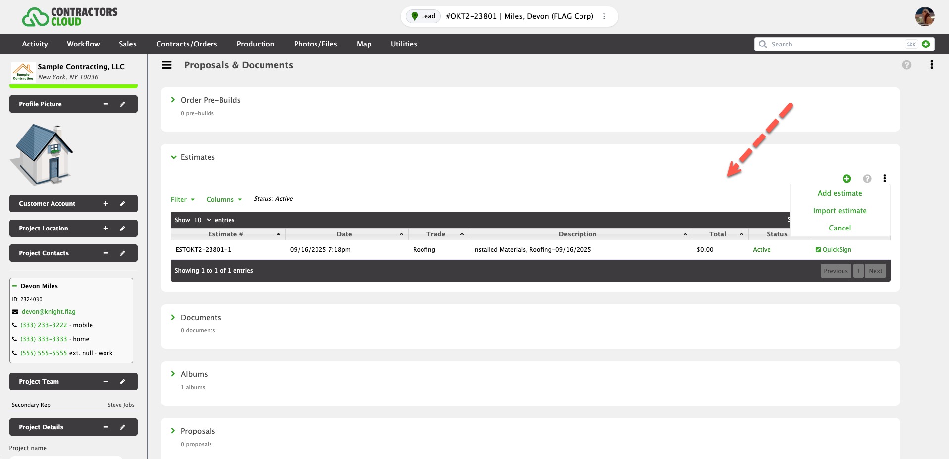 Estimates are a collection of physical materials, estimating items, and/or labor items to propose a cost total to a customer or agent.