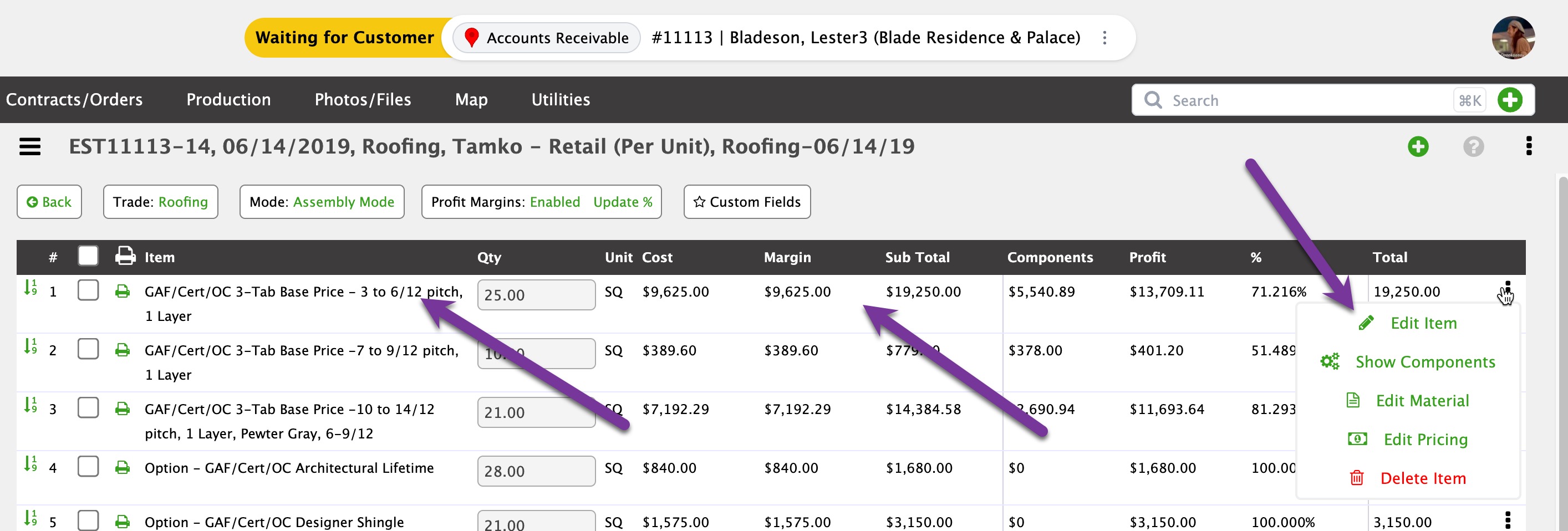 Editing Estimate Items
