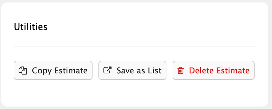 Save as List - Saves the Estimate as a Material List ("Can save estimates as material lists" permission required).