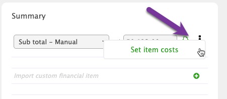 When set to Sub total - Manual, Set item costs allows the User to "back-in" Estimate Item material costs from the amount set for the sub total. Therefore, the sum of your estimate items should add up to the amount set for the sub total.