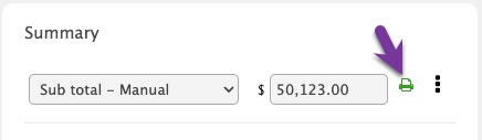 Whether the sub total prints on the print out is managed by toggling the printer icon. This can also be managed in the Print dialog when an Estimate is printed.