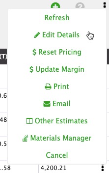 - Reset Pricing - Click this to reset the individual unit price for every Estimate Item within the Estimate. This is beneficial if the item pricing has been updated since the estimate was created.