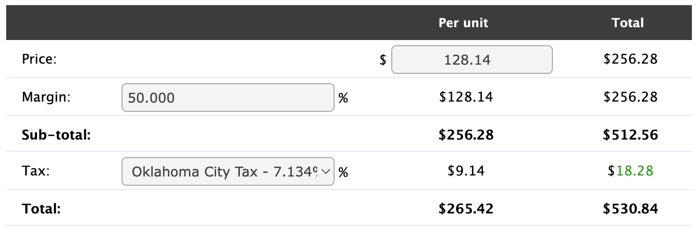 The sum of Price + Labor (if applicable) + Margin (if applicable).