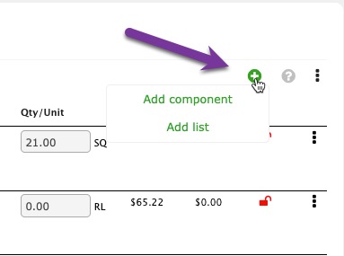 Click the green circle plus sign to add Estimate Item Components.