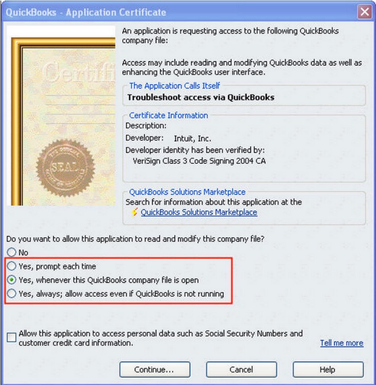 This deals specifically with user permissions in QuickBooks. If a user receives this message, their user permissions need to be adjusted in QuickBooks.