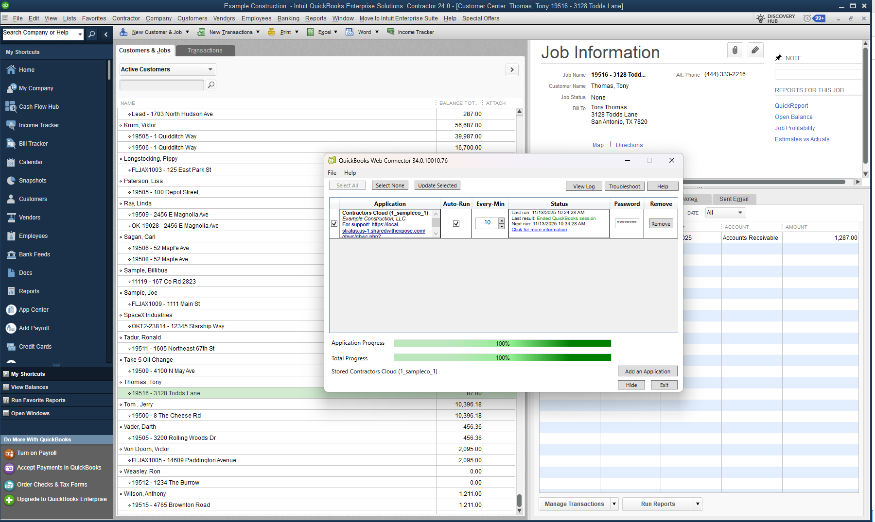 Click the Sync Job within a Contract to send the entire job to the web connector. This includes the Customer Account, Job Data, and all applicable Invoices, Payments, and Bills.