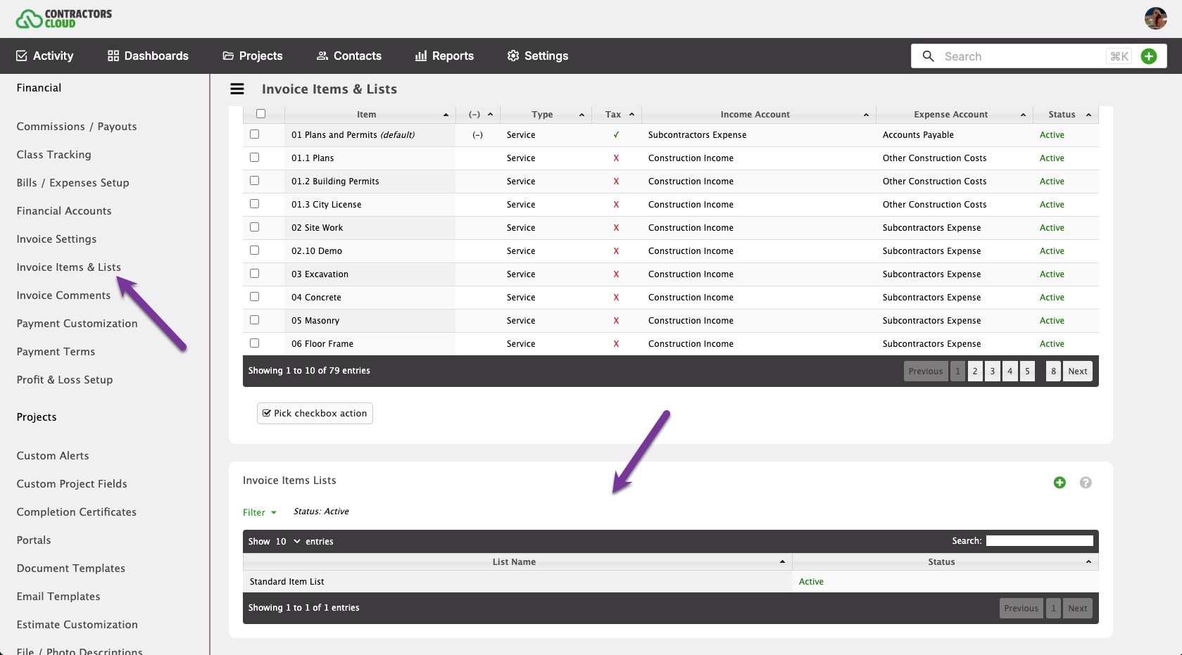 This is where you create lists, or templates, of your most commonly used invoice items. These lists can be used to easily populate items within an invoice.