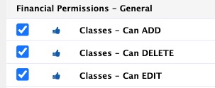 A User must have the appropriate financial permissions to add, edit, and delete Classes.