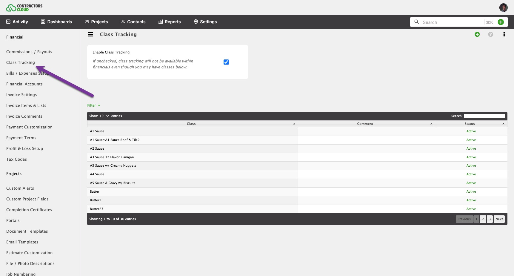 If you are connected to QuickBooks Online, you can easily import your QuickBooks Classes into Contractors Cloud. See the QuickBooks section below.