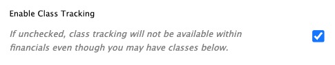 Check this setting in order to use Class tracking for this Company.