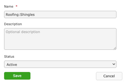 Example: If the class is Shingles and Shingles is a child of Roofing, then the name should be Roofing:Shingles.