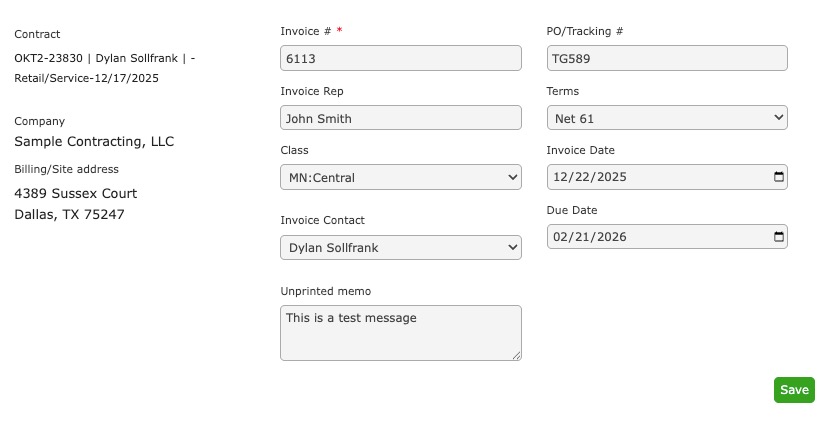 Make sure Sync Invoice is checked in order for the Invoice to sync with QuickBooks.
