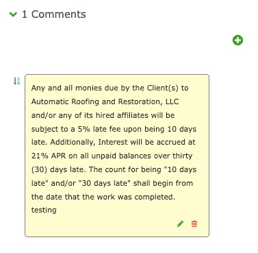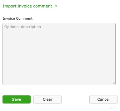 Default comments can be imported from Invoice Settings within Company Settings. These allow the use of certain comments over and over.