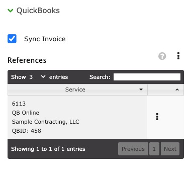 This shows any associated references of the Invoice within QuickBooks.