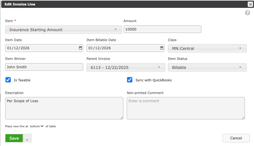 If checked, this Invoice Item will NOT be added to the Invoice that syncs with QuickBooks.