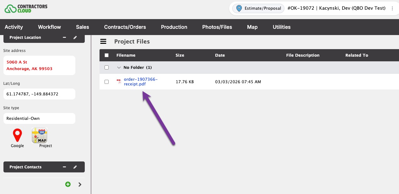 The file is automatically uploaded into the Project Files.