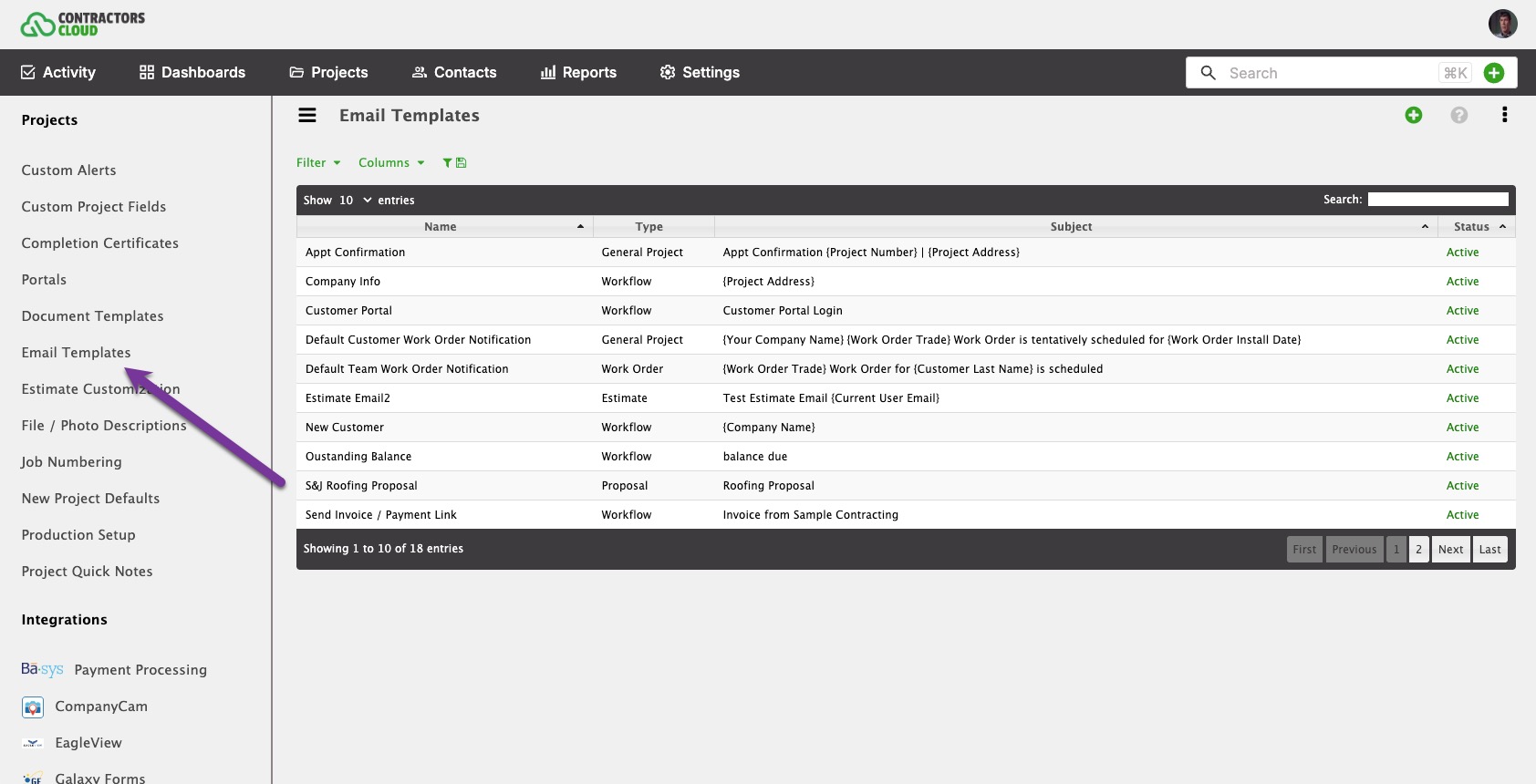 An "email template" is a predesigned email used to populate data within a Project Email. Email templates save time when composing common emails.