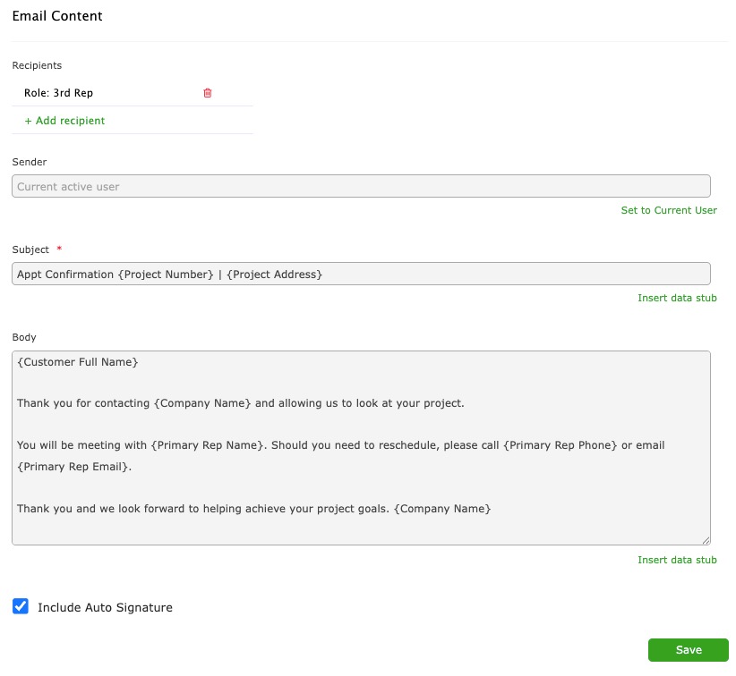 This is main the body of email. Data stubs will be replaced with project data upon import.
