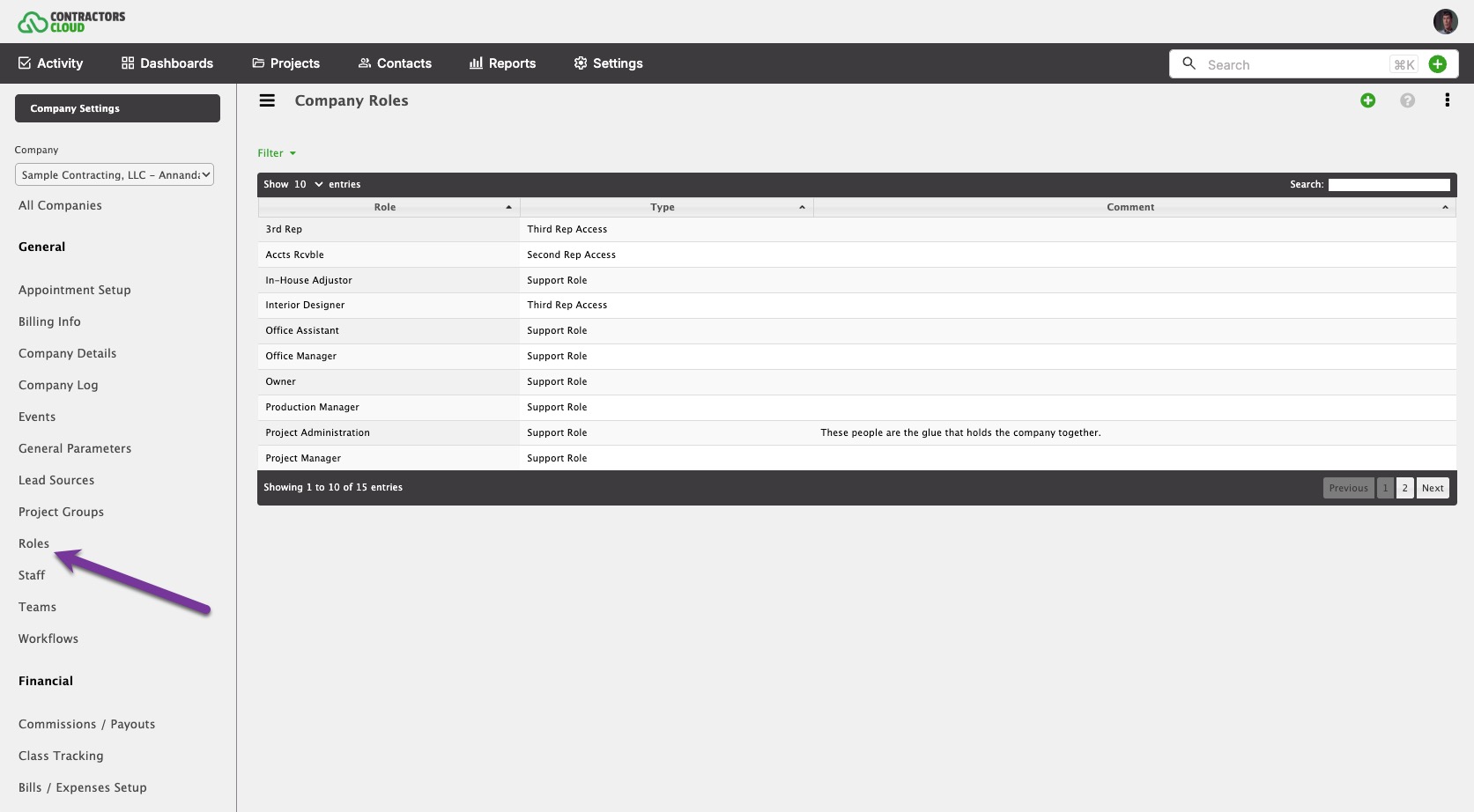 Company Roles are used in many places such as the Project Team, Company Payout Rules, and Workflows.