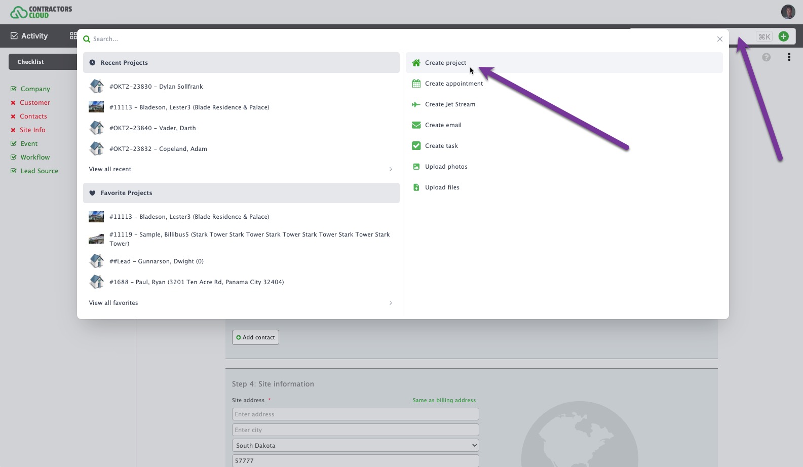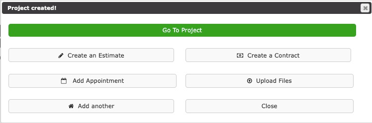 This is where a User creates a Contractors Cloud Lead/Project. Even though we call it a Project, it is the entity where work is done in order to bring it from a Lead status all the way through to completion.