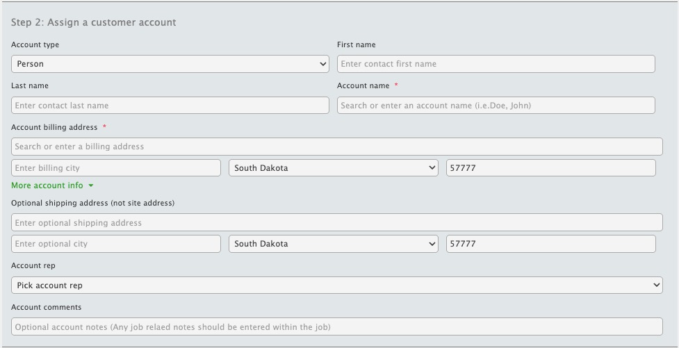 Enter the Customer Account the Project will belong to. A Customer Account is not a person, but an account that owns projects.