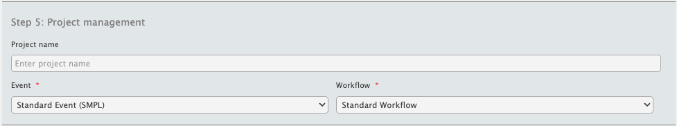This is where a Project Name, Event, and Workflow are entered.