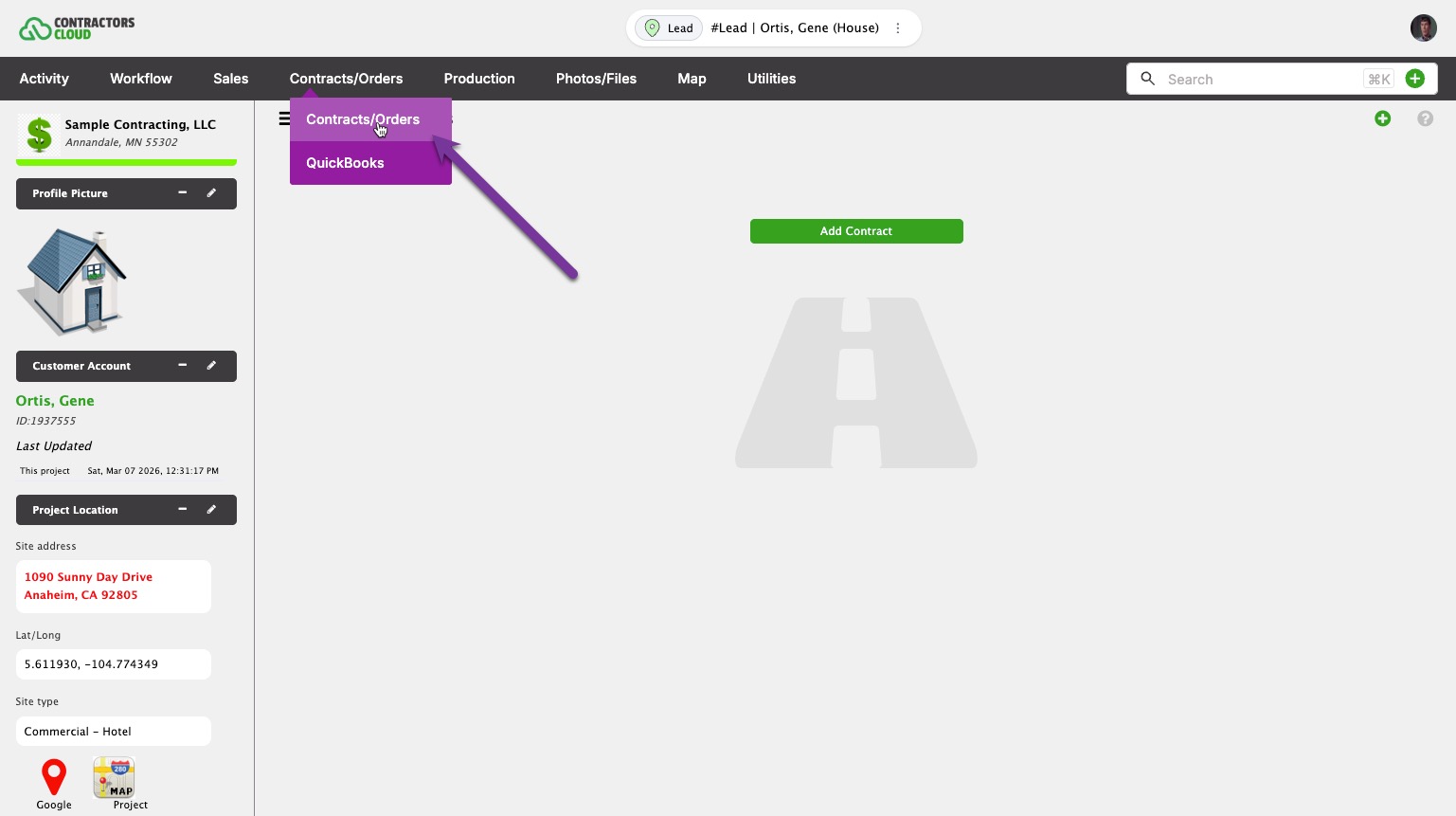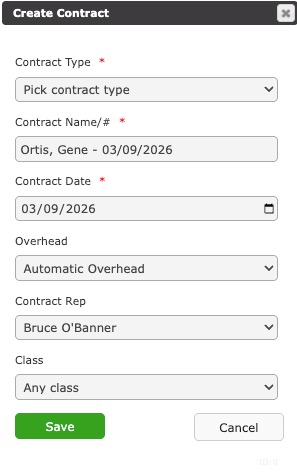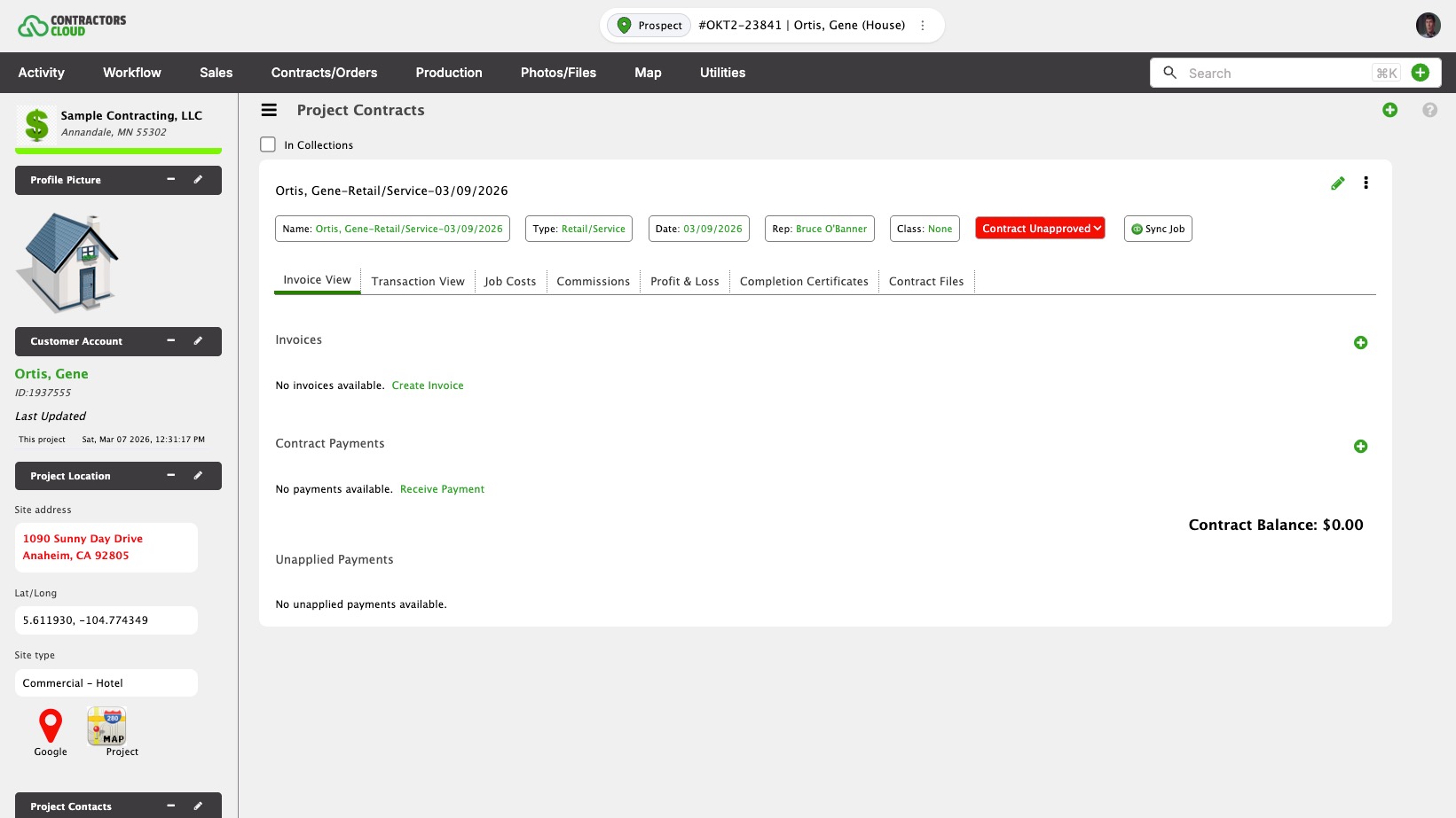 Once a Contract is created, then things like invoices, payments, work orders, material orders, and payouts can be entered.