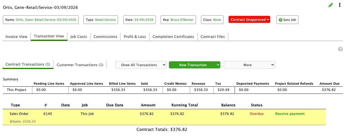 Transaction View is a more detailed view for Contract financials and is where Credit Memos and Refunds are created.