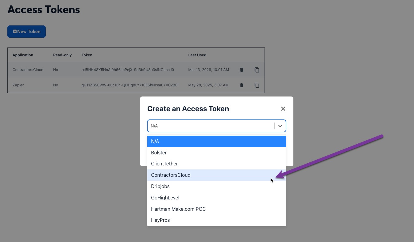 Next, create a token for ContractorsCloud.