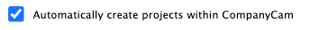 Click this if you wish Contractors Cloud to automatically create a CompanyCam project whenever a new project is created in Contractors Cloud.