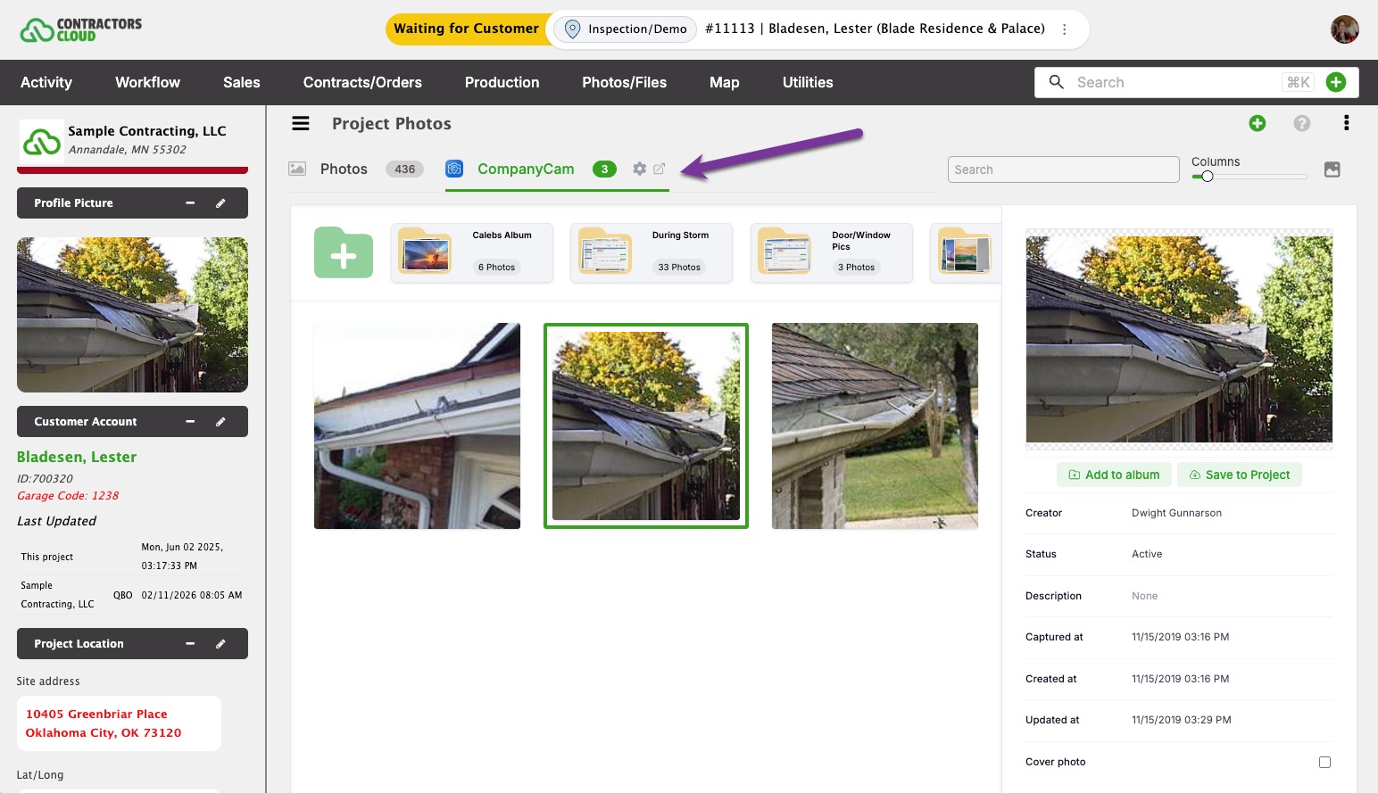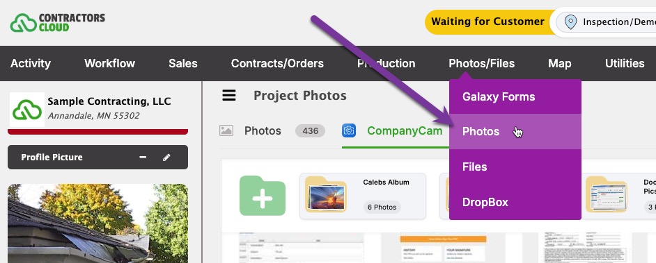 Note: Contractors Cloud does not store CompanyCam photos unless they are used in an Album.